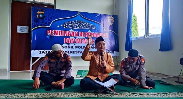 KOPPINEWS.ID,Pangkalpinang- Guna menciptakan sosok anggota Polri yang lebih humanis dan bersahaja dalam mengemban tugas Kepolisian, personel Polresta Pangkalpinang mengikuti pembinaan rohani dan mental (Binrohtal) di Mushola Mapolresta Pangkalpinang. Kamis (12/1).