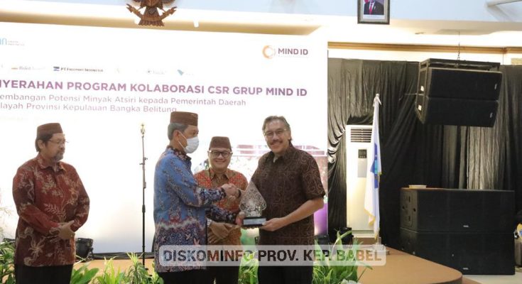 Adapun paket program kolaborasi CSR Group MIND ID dalam mengembangkan potensi minyak atsiri yang diberikan kepada Pemprov. Kep. Babel berupa mesin penyuling minyak atsiri berkapasitas 1 ton termasuk instalasi dan pelatihan, pembangunan tempat mesin penyulingan dan gudang penyimpanan, motor gerobak, dan modal kerja.(Red\Diskominfo).