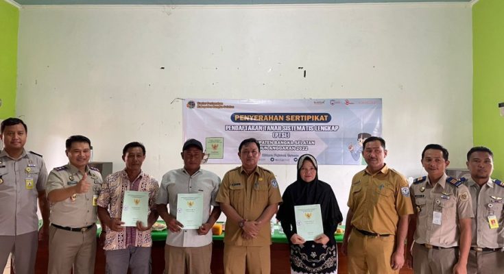 KOPPINEWS.ID,Keposang- Bupati Bangka Selatan H. Riza Herdavid, S.T., M.Tr.IP diwakili Asisten Pemerintahan dan Kesejahteraan Rakyat Haris Setiawan, S.Pi., M.T membagikan secara simbolis Sertipikat Pendaftaran Tanah Sistematis Lengkap (PTSL) Kabupaten Bangka Selatan, Senin (30/1/23).
