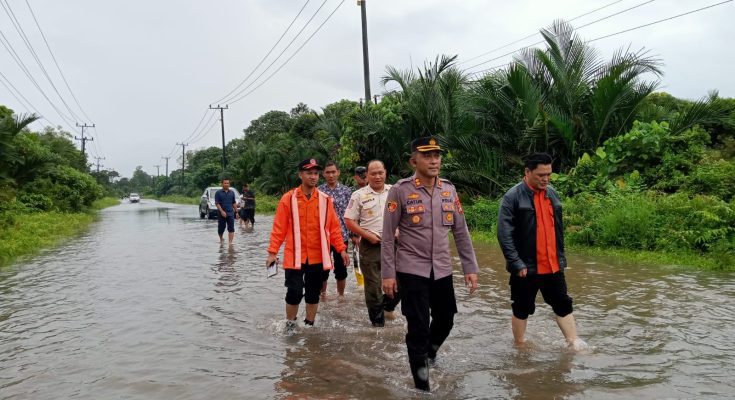 Kapolres Bangka Barat AKPB Catur Prasetiyo SIK, di dampingi Kabag ops, Kasat intelkam dan Tim Penanagan Banjir monitoring dan membantu Masyarakat dalam Penanganan Banjir , Selasa (31/01/2023).