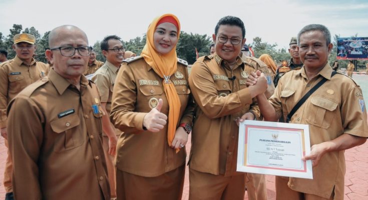BUPATI RIZA BERIKAN PENGHARGAAN KEPADA SEKOLAH YANG LAKSANAKAN INOVASI PENGELOLAAN LINGKUNGAN HIDUP