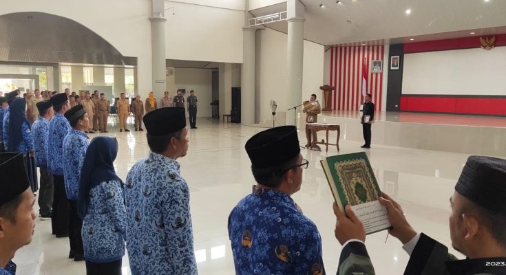 KOPPINEWS.ID,Toboali – Bertempat di Gedung Serba Guna Kabupaten, Bangka Selatan Bupati Bangka Selatan H. Riza Herdavid. S.T., M.Tr.IP melakukan Pengangkatan dan Pelantikan 32 Pejabat Struktural, Pengambilan Sumpah 55 CPNS menjadi PNS serta Pelantikan dan Pengambilan Sumpah/Janji 130 Jabatan Pejabat Fungsional di Lingkungan Pemerintah Kabupaten Bangka Selatan dan dan pengukuhan Camat Lepar Pongok menjadi Camat Lepar, Senin (13/2/23).