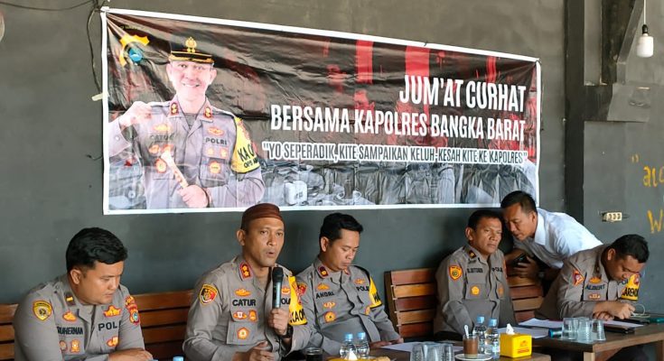 KOPPINEWS.ID,BABAR- Polres Bangka Barat kembali melaksanakan Jumat curhat dengan tema “Rekrutmen Polri”, kegiatan di laksanakan di Warkop Kamitra Kecamatan Mentok. Jumat (17/02/2023)