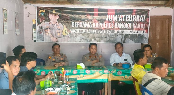 KOPPINEWS.ID,BABAR- Program Jumat Curhat Polres Bangka Barat kali ini digelar di warung kopi di terminal Kecamatan Mentok Kabupaten Bangka Barat, Jumat (17/03/2023)