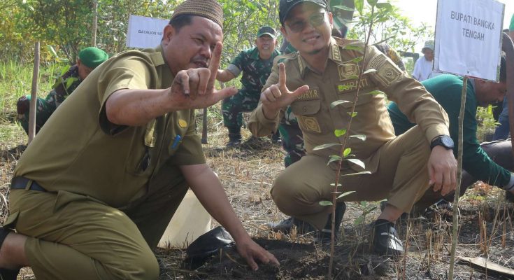 Selain mengikuti kegiatan melalui zoom meeting, Desa Namang juga terpilih sebagai salah satu lokasi dari 9 titik yang terpilih dari seluruh desa se-Indonesia untuk melakukan penanaman pohon secara serentak.