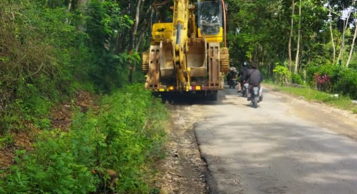 Alat berat digunakan hanya membuang dan membersihkan tanah longsor yang menutupi sebagian badan jalan aspal sepanjang 15 meter, itu saja.