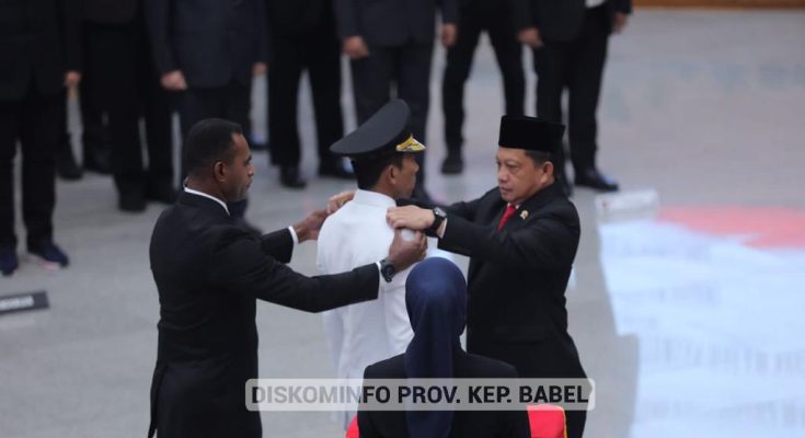 Beralihnya kursi kepemimpinan di Negeri Serumpun Sebalai itu ditandai dengan pengambilan sumpah jabatan, dan pelantikan yang dilakukan langsung oleh Menteri Dalam Negeri (Mendagri) RI Tito Karnavian, di Gedung Sasana Bhakti Praja Kantor Pusat Kementerian Dalam Negeri (Kemendagri), Jakarta, Jumat (31/3/2023) pagi.