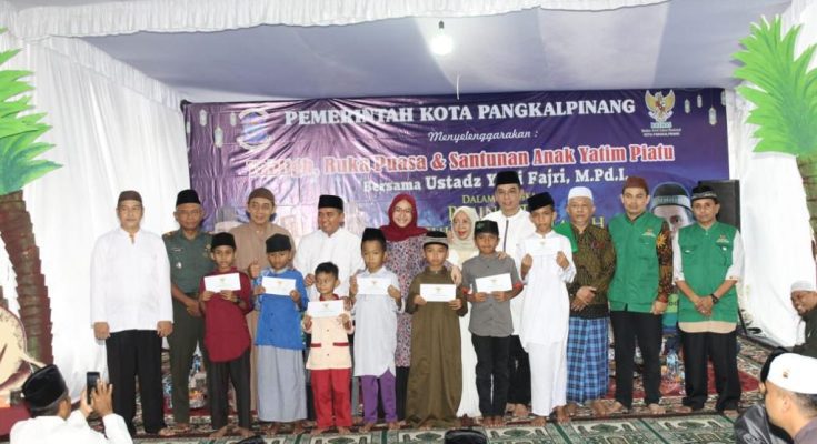 Diakhir acara di lanjutkan menyerahkan secara simbolis santunan anak yatim piatu dan dilanjutkan dengan tausiyah oleh Ustadz Yadi Fajri.(Diskominfo pgk).