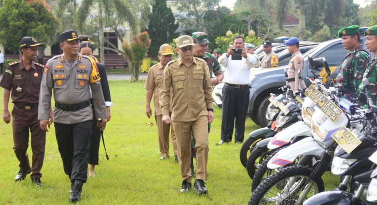 KOPPINEWS.ID,KOBA- Pemerintah Kabupaten Bangka Tengah (Bateng) bersama para Forkopimda mengikuti Apel Gelar Pasukan Operasi Ketupat Menumbing 2023 sebagai upaya pengamanan Idul Fitri 1444 H Tahun 2023 dengan tema Mudik Aman Berkesan, yang dipimpin langsung oleh Kapolres Bateng, bertempat di halaman Kantor Bupati Bateng, Senin (17/04/2023).