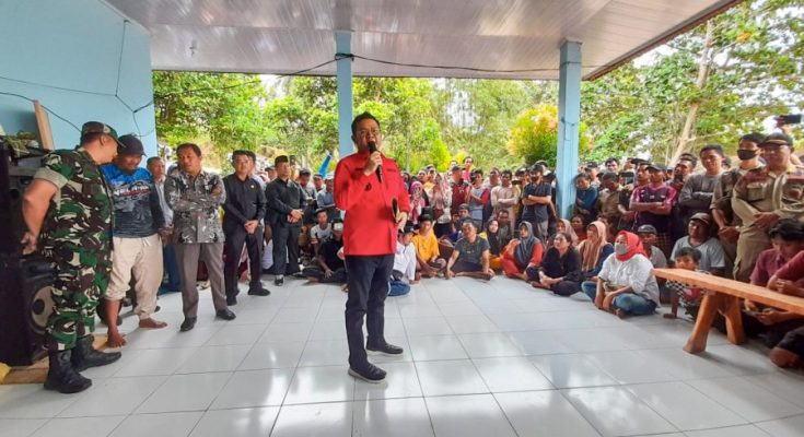 KOPPINEWS.ID,Toboali – Bupati Bangka Selatan H. Riza Herdavid, S.T., M.Tr.IP turun langsung kelapangan melakukan audiensi  dan mendengar aspirasi nelayan terkait kisruh Ponton Isap Produksi (PIP) Timah Laut Desa Rias di Pantai Batu Perahu, Tg. Ketapang, Senin, (29/5/23).