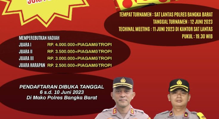 KOPPINEWS.ID,BABAR- Dalam rangka HUT Bhayangkara ke- 77, Polres Bangka Barat menggelar berbagai perlombaan yang dirangkai, salah satunya adalah lomba Seni Pikir Gaple/Domino, yang di gelar pada tanggal 12 Juni 2023, dan pendaftaran di buka pada 6 sd 10 juni 2023 dengan peserta dari masyarakat umum.