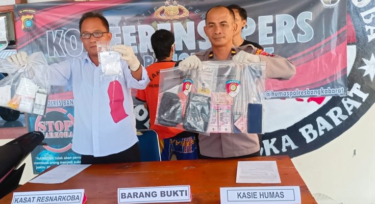 Polres Bangka Barat Laksanakan Konferensi Pers Ungkap Kasus Narkoba dengan Barbuk Sabu 57,29 Gram