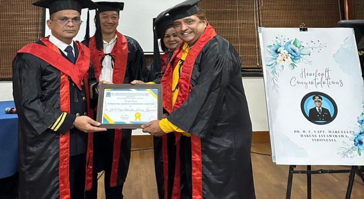 “Capt Marcel mendapat gelar Doktor HC sebagai bentuk penghargaan tertinggi atas pencapaiannya yang secara konsisten mengamati, mengkritisi, dan menyuarakan kemaritiman di Indonesia khususnya dan Internasional umumnya…”, ujar Prof. Vinayak Direktur Urusan Luar Negeri CMR University.