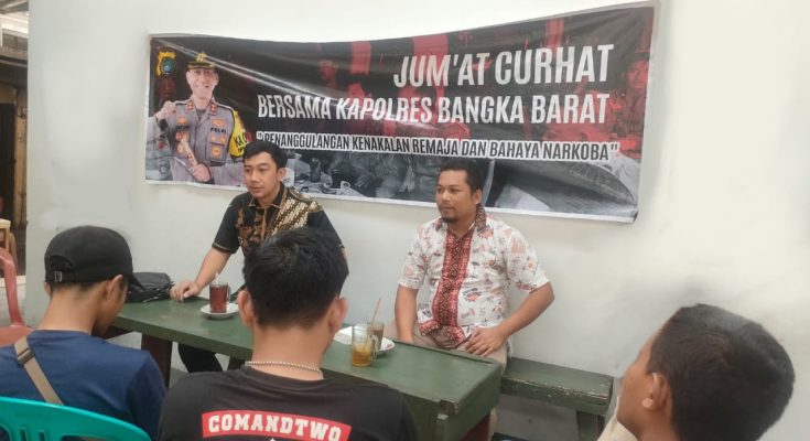 KOPPINEWS.ID, BANGKA BARAT – Jumat (07/07/2023) Polres Bangka Barat, menggelar kegiatan bertajuk ‘Jumat Curhat’ untuk mendengarkan keluh kesah masyarakat secara langsung di Warung kopi yuk nur.