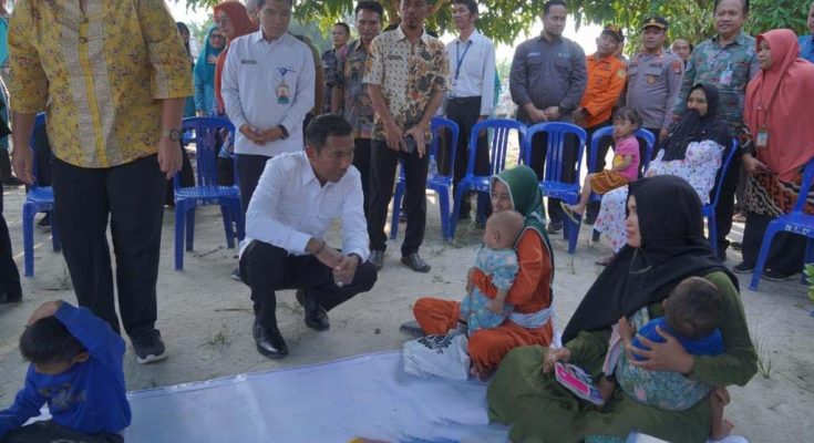 Pj Gubernur Suganda dengan didampingi Penjabat (Pj) Ketua TP PKK Provinsi Kepulauan Bangka Belitung, Bupati Bangka Tengah bersama Ketua TP PKKnya, Kepala BKKBN Prov. Kep. Babel, Kadinkes Prov. Kep Babel serta forkopimda baik dari Provinsi maupun Kab Bangka Tengah bersama sama melihat langsung kondisi anak anak yang menderita stunting dan bertemu dengan orangtuanya.