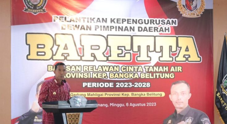 KOPPINEWS.ID, PANGKALPINANG – Minggu (06/08/2023) Penjabat (Pj) Gubernur Kepulauan Bangka Belitung (Kep. Babel), Suganda Pandapotan Pasaribu menghadiri pelantikan kepengurusan DPD Barisan Relawan Cinta Tanah Air (BARETTA) Provinsi Kep. Babel periode 2023-2028 di Ruang Mahligai, Rumah Dinas Gubernur.