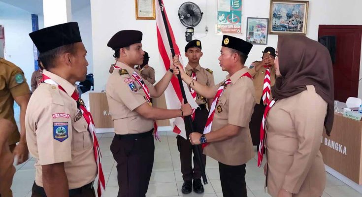 KOPPINEWS.IDM, Sungailiat – Selasa (08/08/2023) Bupati Bangka H. Mulkan, SH., MH., melepas 67 peserta Raimuna Nasional (Rainas) tahun 2023 Kontingen Kwarcab Bangka bertempat di Rumah Dinas Bupati Bangka.
