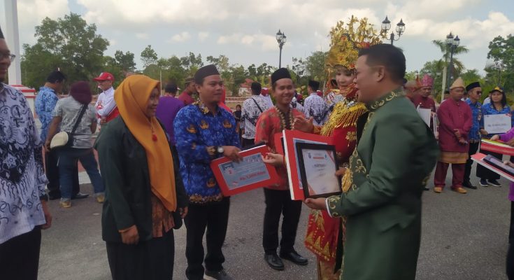 Bupati Basel Riza Herdavid didampingi Kepala Dinas Perpustakaan dan Kearsipan Daerah Kabupaten Bangka Selatan Sumadi, MPd mengucapkan selamat kepada pemenang lomba menulis esai Inkubator Literasi Pustaka Nasional.