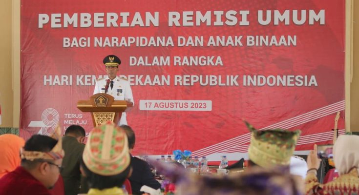 “Oleh karena itu, pemerintah memberikan apresiasi berupa pengurangan masa menjalani pidana remisi bagi mereka yang telah menunjukkan prestasi, dedikasi dan disiplin yang tinggi dalam mengikuti program pembinaan serta telah memenuhi syarat sebagaimana diatur dalam ketentuan perundang-undangan yang berlaku,” jelas Pj Gubernur Suganda.