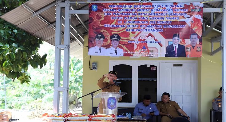 Bupati Bangka H.Mulkan Serahkan Bantuan Korban Kebakaran Di Kuday Sembari Ingatkan Masyarakat Untuk Menjaga Kekompakan