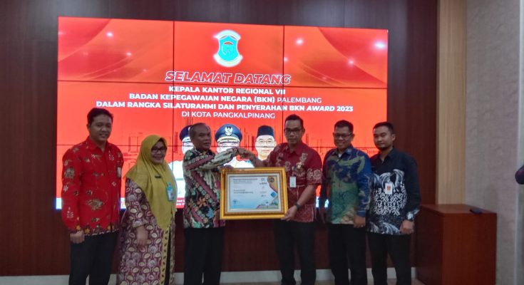 KOPPINEWS.ID, PANGKALPINANG – Kamis (07/09/2023) Pemerintah Kota Pangkalpinang terima penghargaan BKN Award 2023 Pemerintah Kota Tipe Sedang atas pencapaian dalam pengembangan kompetensi yang diserahkan langsung Kepala Kantor Regional VII BKN, Drs. Margi Prayitno, M.AP di Smart Room Center Kantor Wali Kota Pangkalpinang.