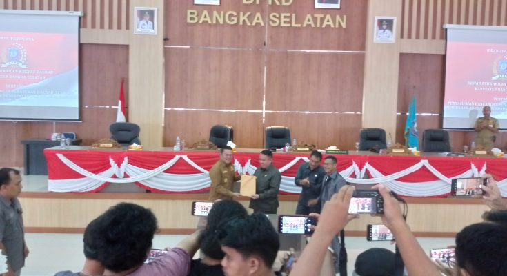 BANGKA SELATAN, KOPPINEWS.ID – Dewan perwakilan rakyat daerah kabupaten Bangka Selatan, Melaksanakan sidang paripurna tentang penyampaian Rancangan peraturan daerah tentang perubahan anggaran pendapatan dan belanja daerah tahun anggaran 2023, di ruang Paripurna junjung besaoh DPRD kabupaten Bangka Selatan (Basel), kepulauan Bangka Belitung (Babel) Senin, 18/09/2023