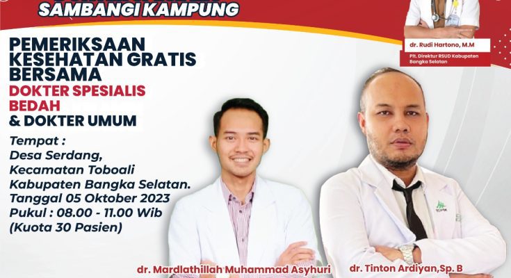 “Dalam program ini, tim medis yang terdiri dari dokter umum dan dokter spesialis bedah tampil di tengah masyarakat untuk memberikan pelayanan medis gratis,” Ujar Plt, Direktur RSUD Bangka Selatan, dr. Rudi Hartono