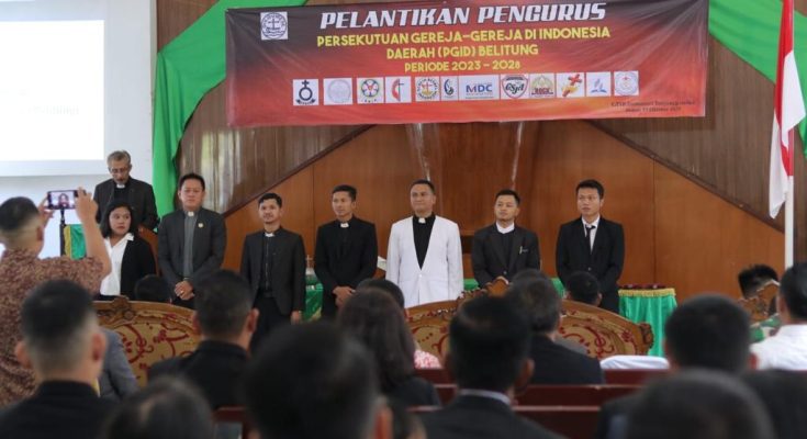 KOPPINEWS.ID, TANJUNGPANDAN – Jumat (13/10/2023) Penjabat (Pj) Gubernur Kepulauan Bangka Belitung (Babel), Suganda Pandapotan Pasaribu menghadiri pelantikan pengurus Majelis Pekerja Harian (MPH) Persekutuan Gereja-Gereja di Indonesia Daerah (PGID) Kabupaten Belitung periode 2023-2028, yang dilaksanakan di Gereka GBIP Imanuel Tanjungpandan, Kabupaten Belitung.