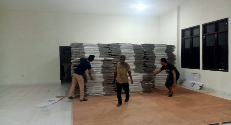 “Jadi pada malam ini kita sudah didatangkan bilik suara, dan memang pengadaannya itu dari KPU RI,” ungkap Ketua KPU Muhidin kepada sejumlah wartawan.