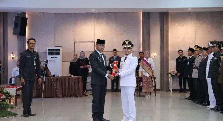 KOPPINEWS.ID, PANGKALPINANG – Pengganti Antar Waktu Wakil Bupati (Wabup) Bangka Tengah masa bakti 2021-2024, Era Susanto resmi dilantik dan diambil sumpah oleh Penjabat (Pj) Gubernur Kepulauan Bangka Belitung (Kep. Babel) Suganda Pandapotan Pasaribu pada Senin (6/11/2023) di Ruang Pasir Padi Kantor Gubernur Kep. Babel.