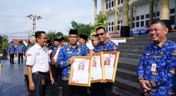 Memberikan Penghargaan Inovasi Daerah pada Upacara Hari Korpri ke-52 Kepada Sejumlah OPD