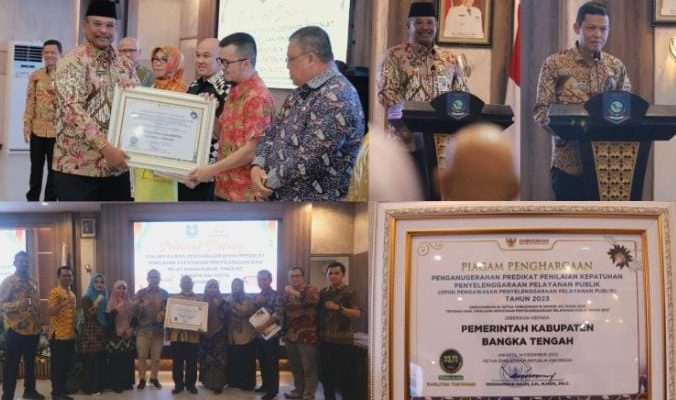 Penghargaan ini diberikan langsung oleh Pj Gubernur Provinsi Kepulauan Babel, Safrizal Z.A., kepada Era Susanto, dimana Kabupaten Bangka Tengah sendiri meraih Zona Hijau Kualitas Tertinggi dengan poin sebesar 93,71 dari Ombudsman Republik Indonesia (RI).