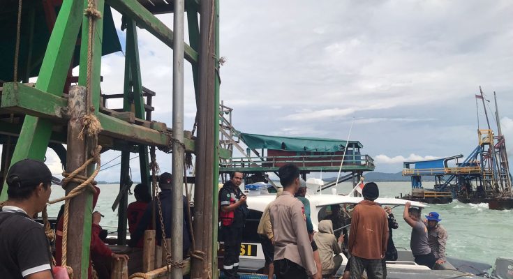 Bangka Selatan, KOPPINEWS.ID – Satpolairud Polres Bangka Selatan (Basel), bersama Kodim 0432, Pos Binpotmar A Toboali, dan Was PIP PT Timah melaksanakan kegiatan himbauan kepada Pekerja Ponton TI jenis Tower ilegal yang bekerja di IUP PT. Timah di Perairan Laut Sukadamai Toboali pada senin(15/01/2024).