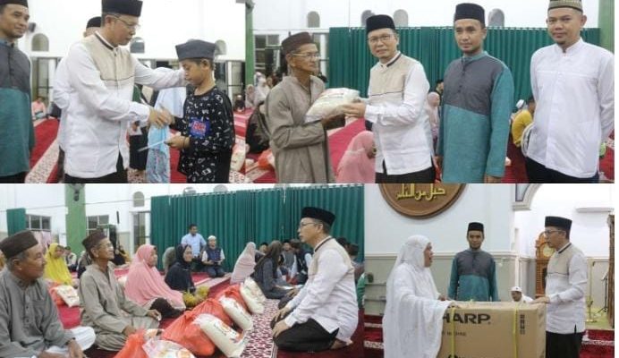 Bupati Bangka Tengah, Algafry Rahman, yang hadir bersama jajaran Kepala OPD di lingkungan Pemkab Bateng, bersama Camat Namang, Kepala Desa Belilik, serta Kabag Kesra Setdakab Bateng, memberikan bantuan 20 paket sembako dan santunan kepada 20 anak yatim kepada warga usai melaksanakan salat berjamaah.