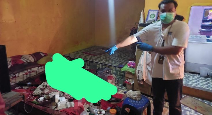 Saat Tiba di lokasi rumah kediaman korban, saat itu kondisi rumah dalam keadaan Pintu terkunci dari dalam. Kemudian saksi memanggil nama korban berulang-ulang, namun tidak ada balasan dari korban.
