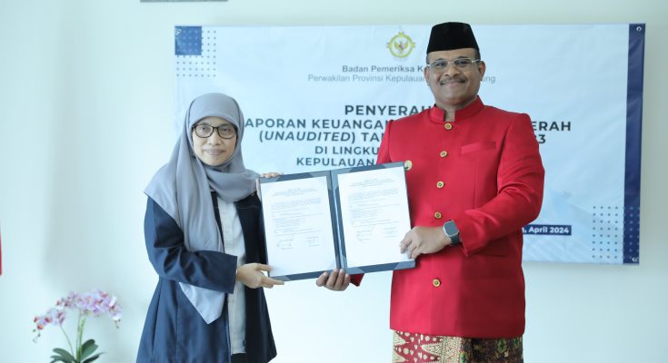 KOPPINEWS.ID, PANGKALPINANG – Penjabat (Pj) Gubernur Kepulauan Bangka Belitung (Kep. Babel) Safrizal ZA menyerahkan Laporan Keuangan Pemerintah Daerah (LKPD) Provinsi Kepulauan Babel Tahun 2023 Unaudited kepada Badan Pemeriksa Keuangan (BPK) RI, di kantor BPK Perwakilan Kep. Babel, Pangkalpinang, Senin (22/4).