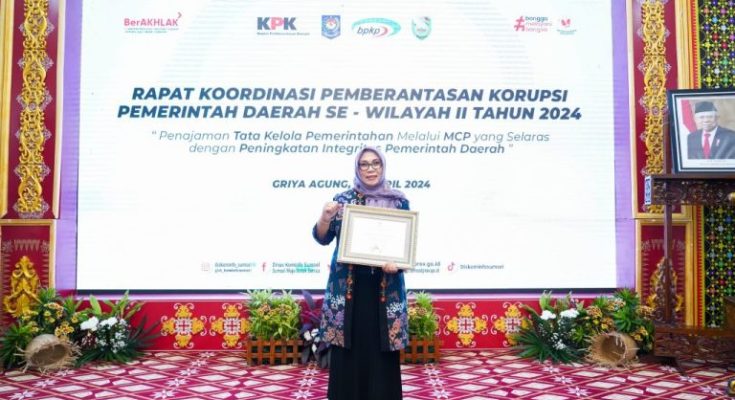 KOPPINEWS.ID, PALEMBANG-Pemerintah Kota (Pemkot) Pangkalpinang menerima penghargaan dari Komisi Pemberantasan Korupsi (KPK) sebagai Pemerintah Daerah dengan peningkatan nilai MCP tertinggi wilayah II tahun 2023. Penghargaan ini diterima langsung oleh Pejabat (Pj) Wali Kota Pangkalpinang, Dra. Lusje Anneke Tabalujan, M.Pd, di Palembang, Sumatera Selatan, Selasa (23/4/2024).