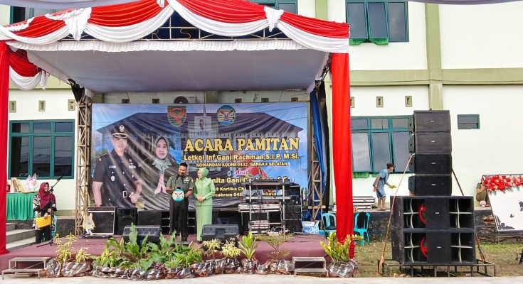 Bangka Selatan, koppinews.id – Setiap Awal pasti ada akhir, Menjelang akhir jabatan Komandan Distrik Militer (Dandim) 0432 Bangka Selatan Letkol Inf Gani Rachman, S.I.P, M.Si. Bersama Ketua Persit Ny. Anita Gani Rachman KCK Cabang LVI DIM 0432 menggelar acara Pamitan dengan keluarga besar Kodim 0432, Pejabat tinggi pemerintah daerah serta Forkopimda, Tokoh agama, dan Tokoh masyarakat di halaman Kodim Bangka Selatan (Basel) , kepulauan Bangka Belitung, Selasa, 07/05/2024 sore