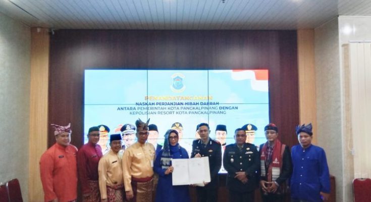 KOPPINEWS.ID,Bangka Belitung – Penjabat Wali Kota Pangkalpinang dan Kepala Kepolisian Resor Kota Pangkalpinang gelar penandatanganan Naskah Perjanjian Hibah Daerah antara Pemerintah Kota Pangkalpinang dan Polresta Pangkalpinang di Smart Room Center (SRC) Kantor Wali Kota Pangkalpinang, Sabtu (1/6/2024).