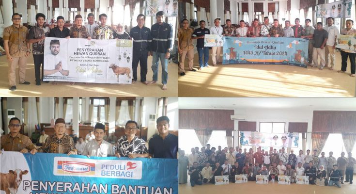 KOPPINEWS.ID, KOBA – Pemerintah Kabupaten (Pemkab) Bangka Tengah (Bateng) menyerahan bantuan hewan kurban secara simbolis dari Mitra Corporate Social Responsibility (CSR) serta Tanggung Jawab Sosial dan Lingkungan (TJSL) kepada perwakilan masyarakat kelurahan/desa se-Kabupaten Bangka Tengah, bertempat di Pendopo Rumah Dinas Bupati Bateng, pada Kamis (13/06/2024).