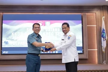 KOPPINEWS.ID,- Babel Terima Rombongan Pasis II Seskoal 2024 Muhammad Safril 26 Juni 2024, 22:44 WIB Pj Sekda Babel, Fery Apriyanto menerima kunjungan Pasis II Seskoal. / Betare Belitong – Provinsi Kepulauan Bangka Belitung menerima rombongan Perwira Siswa (Pasis) II Dikreg Sekolah Staf dan Komando Angkatan Laut (Seskoal) Angkatan ke-62 Tahun 2024 dalam rangka Kuliah Kerja Dalam Negeri (KKDN) bertempat di Ruang Pasir Padi, Kantor Gubernur Babel, Rabu, 26 Juni 2024. Pada forum tersebut, Pj Sekda Fery Aprianto memaparkan profil wilayah Provinsi Babel, konsep tata ruang bidang pertahanan dan peran pemerintah dalam pertahanan dan keamanan serta industri jasa maritim dan objek vital nasional. Dalam penjelasannya, Fery mengatakan kawasan perairan menguasai 79,90 % total dari luas Kepulauan Babel yang terdiri dari 507 pulau dengan 2 pulau besar, yakni Bangka dan Belitung, dan 505 pulau-pulau kecil yang tersebar di kawasan pesisir dan laut. “Kondisi ini menyebabkan sulitnya pengawasan dan pengamanan pulau-pulau kecil secara berkelanjutan” ujar Pj Sekda Fery. Dengan keadaan tersebut mengakibatkan relatif rentan terhadap pelanggaran hukum di perairan seperti illegal fishing.penambangan ilegal, maupun peredaran obat terlarang dengan banyaknya pulau yang tidak berpenghuni.