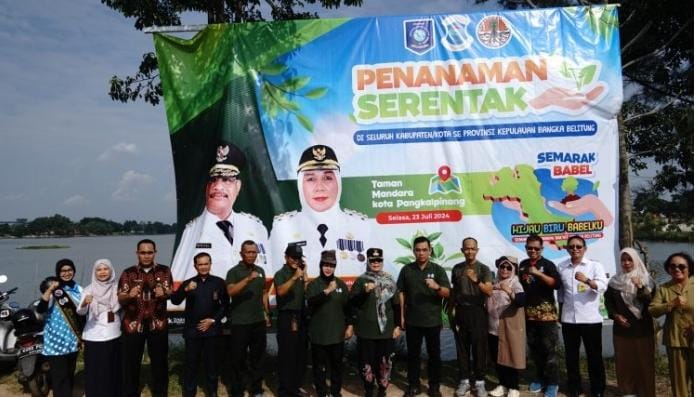 KOPPINEWS.ID, PANGKALPINANG– Pemerintah Kota Pangkalpinang mengikuti gerakan menanam pohon serentak Program Semangat Menanam Rakyat Bangka Belitung (Semarak Babel) tahun 2024 dengan menanam 700 bibit pohon di kawasan Taman Mandara dan seluruh aliran Sungai Rangkui, Selasa (23/7/24).