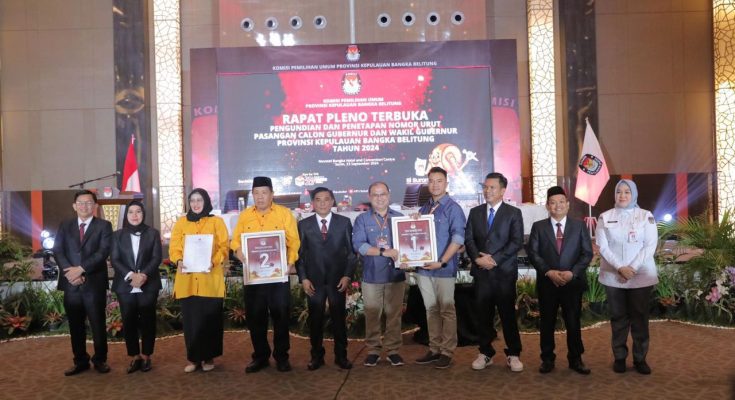 KOPPINEWS.ID, Babel- Komisi Pemilihan Umum (KPU) Provinsi Kepulauan Bangka Belitung (Babel) resmi menetapkan nomor urut Pasangan Calon (Paslon) Gubernur dan Wakil Gubernur yang akan bertarung pada Pilkada 27 November 2024 mendatang.