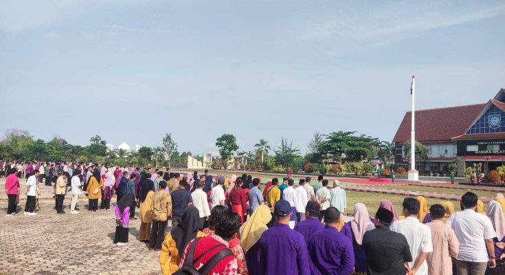 KOPPINEWS.ID, Bangka Selatan- Dalam rangka memperingati Hari Jadi ke-316 Kota Toboali, Pemerintah Kabupaten Bangka Selatan menggelar upacara di Halaman Komplek Perkantoran Terpadu, Jumat (25/10/2024). Upacara ini berlangsung meriah dengan nuansa kental Melayu, di mana seluruh peserta diwajibkan mengenakan pakaian adat, menambah suasana khidmat dan penuh kebanggaan.
